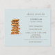 Invitación de inauguración de panadería con torre de galletas con chispas de chocolate en acuarela sobre fondo azul.