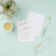 El romántico diseño minimalista presenta una tipografía encantadora y elegante sobre un fondo blanco con un aspecto limpio y sencillo. Guarde el papel incluyendo los detalles en la parte posterior de la invitación a la boda en lugar de en una tarjeta separada. Incluya también la información de RSVP si su invitado responderá electrónicamente (opcional). Este diseño es una versión de volante de papel que no incluye automáticamente sobres. Este diseño ha sido diseñado para ofrecerle un bonito diseño, a la vez que es asequible. Por favor, considere el peso de papel para este diseño. Si quieres este mismo diseño pero en el material grueso, ponte en contacto conmigo directamente o haz clic en el botón "transferir este diseño" a la derecha. Transfiera esto a una "hoja de papel" para una opción de cartón fácil de usar con sobres. O a la "invitación llana" para tener esto en la tradicional invitación de tamaño. Si necesitas comprar sobres, te recomiendo el tamaño A6. Aquí hay un enlace a algunos de mis artículos de Zazzle shop: https://www.zazzle.com/z/ah8wlmzk?rf=238187168869594910 Todos los aspectos de este diseño pueden ser editados (tipo de letra, tamaño del texto o acentos florales movidos/eliminados) para adaptarlos a sus necesidades. Por favor, contáctame si necesitas ayuda con este diseño.