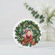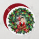 Navidades redondean la tarjeta de la foto con elegante personalizado diseñado para ilustrar la corona holly. Personalizar esta tarjeta con tu propio saludo y nombres. "Feliz Navidad"