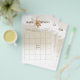El Bingo Bebé es un juego divertido e interactivo perfecto para cualquier ducha de bebé con temática de oso de peluche. A cada huésped se le entrega una tarjeta de bingo para completar los regalos que usted piensa que se abrirán. Mientras la futura madre abre sus regalos, los invitados marcan los artículos correspondientes en su tarjeta de bingo. ¡El primer invitado que marca todos los objetos seguidos y grita "bingo" gana el juego! Esta es una gran manera de lograr que todos participen en el proceso de apertura de regalos y al mismo tiempo añadir algo de emoción al fiesta.