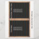 Cree un volante para llevar a casa para promocionar su restaurante. Este volante de dos caras tiene el aspecto de un clásico cartel de letras o letrero estilo marquesina en negro colocado en un marco de madera marrón. La parte delantera del volante tiene espacios para agregar información comercial y detalles de contacto. La parte trasera tiene espacio para que usted liste su menú.