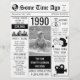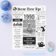 La plantilla incluye detalles y estadísticas de la década de 1990 con espacio para fotos personales e información sobre el homenajeado. Hazlo tuyo añadiendo tu texto y fotos personales (las fotos cambiarán automáticamente a blanco y negro). Para acceder a herramientas de edición avanzadas, vaya a “Personalizar”, desplácese hacia abajo y pulse el enlace "haga clic para personalizar aún más". Para ver más diseños similares, haga clic en el enlace “Otros productos de esta colección”.