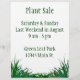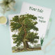 Una plantilla de volante personalizado con arte vintage de un roble. La parte posterior tiene un borde de césped en la parte inferior con espacio para el texto de su personalizado. Haga clic en Personalizar para cambiar las fuentes, agregar texto e incluso guardar el diseño para más adelante.