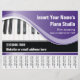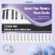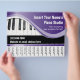 El folleto clásico, de color morado y blanco, incluye texto de teclado y personalizable. Cortar las líneas verticales en la parte inferior del volante para que los transeúntes puedan llevar fácilmente su información con ellos.
