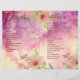 Estilo fresco y juvenil. Programa de boda floral lindo y elegante. Rosas silvestres de acuarela hechas a mano de color rosa sobre fondo de acuarela rosa.
