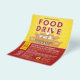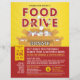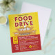 El volante de recaudación de fondos para la campaña de alimentos rojos y amarillos presenta cajas de cartón cargadas de alimentos enlatados. El propósito del volante es promover donaciones de alimentos para alimentar a los hambrientos.