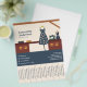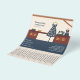 Un volante con tiras lacrimógenas y el ilustracion de un taller de costura con un vestido azul con motivos florales, una máquina de coser, un maniquí y una cómoda de madera en un tono cálido. Perfecto para actividades como costurera, sastre, costurera, reformas, reparaciones, diseñadores de moda, costura artesanal, etc.