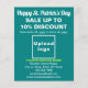 Volante verde verde azulado para el Día de San Patricio que puede personalizar especificando el porcentaje de descuento, las fechas de venta, cargando el logotipo de su negocio, escribiendo su nombre de negocio, dirección, número de teléfono, correo electrónico y sitio web. Personalizar y repártelo para atraer a más clientes a que compren sus productos o clientes para que les gusten sus servicios. Por favor, compruebe la apariencia de los lados delantero y trasero después de cargar el logotipo y escribir textos. Si la apariencia le resulta agradable, puede realizar su pedido ahora. Si necesita cambiar el tamaño y la posición del logotipo y los textos para que encajen en este volante o en el tamaño que ha elegido, ajuste la herramienta de diseño. También puede cambiar el color de fondo, el color de fuente y el estilo de fuente en la herramienta de diseño. ¡Feliz Día de San Patricio! Le deseamos la mejor de las suertes, alegría y más ventas de esta fiesta.