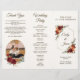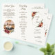 Guíe a sus huéspedes durante su día especial con este elegante folleto rústico sobre el programa de bodas en otoño. Diseñado con rosas de color burdeos, dahlias naranjas quemadas, vegetación eucaliptus y hojas doradas de otoño, este volante complementa perfectamente su colección de papelería boda de otoño. Este folleto, que incluye una detallada orden de ceremonia, instrucciones musicales, lecturas e información sobre la fiesta de bodas, garantiza a los huéspedes el conocimiento que deben esperar mientras realzan la decoración de la mesa. Completamente personalizable, es ideal para bodas de otoño, rústicos o boho, y pares hermosamente con invitaciones a juego, tarjetas RSVP, carteles de bienvenida y números de mesa. Haga que su día de bodas sea impecable y elegante con este programa de bodas de otoño cohesivo y romántico.