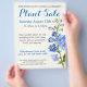 Perfecto para la promoción de ventas de plantas de verano, ventas de plantas o evento de venta de plantas benéficas. El diseño presenta una ilustración botánica de acuarela de arte fino de un delfínio de verano floreciendo por Sarah Trett. La parte posterior del folleto tiene un cartel de la pintura del delfín azul. El folleto de venta de plantas está listo para que lo personalice con su propio texto promocional. Utilice un papel ligero si planea doblar estos folletos. Diseñado y pintado de forma única en acuarela por Sarah Trett.