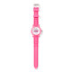 Reloj rosa purpurina super lindo con voleibol gris con bigote gráfico en la cara.