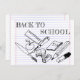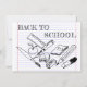 Volviendo al tema de la escuela con un doodle infantil con utensilios escolares sobre el fondo de la almohadilla de escritura.