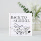 Volviendo al tema de la escuela con un doodle infantil con utensilios escolares sobre el fondo de la almohadilla de escritura.