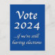 El panorama político americano ha cambiado espectacularmente en las últimas elecciones. Nuestra floreciente democracia de una persona, un voto, está siendo cuestionada por un concepto minoritario de negación de resultados electorales. Es crítico que los estadounidenses amantes de la libertad garanticen su derecho a elecciones libres y justas votando en cada elección, local, estatal y federal, e insistan en que la voluntad del pueblo sea aceptada y no subvertida. Esta declaración de "Vote 2024... si aún estamos teniendo elecciones" es un poco irónica de humor sarcástico, pero tiene el importante mensaje de que nuestro derecho al voto puede estar en peligro.