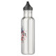 Una audaz declaración de botella de agua con el lema 'Vote por el sentido común de nuevo' sobre una bandera estadounidense.
