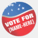 Vota por - agrega tu nombre personalizado para un pegatina de campaña para cualquier tipo de elección. Resumen del fondo de la bandera con estrellas rojas en el fondo y blancas en azul en la parte superior.