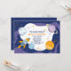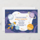 Invitación del cumpleaños de un muchacho con fuera de este tema del espacio del mundo. La tarjeta ofrece un vuelo de la nave del cohete en el espacio exterior oscuro con los planetas y las estrellas. (Diseño por Vecteezy - frankmib6). <br/><br/>La tarjeta es fácil de modificar para requisitos particulares con su fraseología, fuente, color de la fuente y opción de seis tipos de papel<br/><br/>¿Qué usted está buscando no exactamente? Todos nuestros productos se pueden crear para requisitos particulares para cubrir sus necesidades en ningún recargo<br/><br/>Éntrenos en contacto con simplemente en heartfelthelper@gmail.com<br/><br/>Productos de coordinación disponibles: