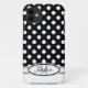 Añade tu nombre y último inicial a este lindo funda negro y blanco, polka-dot iphone 5.