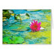 Un lirio de agua fucsia con vegetación lima en agua turquesa.