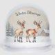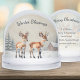 A pretty snow globe featuring an illustration of two baby reindeer in a winter snow scene, in a watercolor style. The words 'Winter Blessings' curve above the animals in elegant script typography. On the back is the greeting 'Merry Christmas' and custom text for your own individual message, with a faint backdrop picture of three reindeer in snow. This charming festive gift and keepsake is ideal for adding a touch of winter wildlife to your decor.