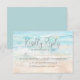 A calming blue and tan beach watercolor background sets the tone for an elegant seaside wedding. The soft, slightly abstract coastal scene captures where the ocean waves meet the shore, creating a peaceful, light, and airy backdrop for your reply card.