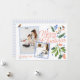 acuarela Azul Citrus Feliz Navidad Dos tarjetas de vacaciones de fotosEsta hermosa tarjeta de fotos de Navidad incluye marcos de color azul acuático para dos fotos con Naranja, flores de cítricos con vegetación de invernadero alrededor de la frase Feliz Navidad y bonito ave Robin.