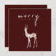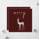 Una moderna tarjeta minimalista de Navidades burdeos diseñada con un reno de color acuático pintado a mano y una tipografía moderna.