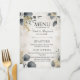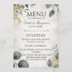 Elevate your reception tables with this elegant eucalyptus greenery wedding menu card. Featuring delicate watercolor botanical leaves and sophisticated classic script typography, this design perfectly balances a rustic and modern aesthetic. This flat 5x7 menu provides ample space to showcase your starters, main courses, and desserts for a seamless dining experience. Ideal for boho, garden, or woodland-themed weddings, the soft neutral palette and gold-toned accents complement any floral arrangement. Easily personalize the names, date, and menu details to create a cohesive look for your special day.