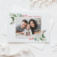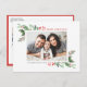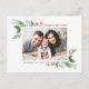 Feliz Navidad! Envíe a su familia y amigos sus saludos de vacaciones más cálidos con esta postal de Navidades de acuarela de personalizable. Cuenta con ilustraciones acuáticos de azulejos y vegetación festiva. Personalice añadiendo una foto paisajística y sus textos. Esta postal de fotos de Navidades acuarelas está disponible en otros tipos de cartón.