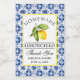 Elegante color de agua limón sobre azulejos azul Boda Limoncello casero Gracias Mini etiquetas de botellas