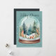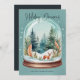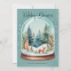 Navidades de acuarela Boho Snow Globe con Feathers Foliage Woodland Holiday Card.