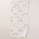 Make bath time magical with this pastel watercolor hooded towel featuring soft rainbows, fluffy clouds, tiny moons, heart confetti, and sparkly stars. Gentle brush textures and muted pastels create a soothing look little ones love. Perfect for baths, beach days, pool time, and baby shower gifts.