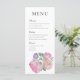 This elegant floral wedding menu features soft watercolor blooms in blush pink, peach, and lavender, beautifully framing a clean and sophisticated layout. With romantic script headings and timeless serif fonts, this menu adds a refined touch to your reception tables. Perfect for garden weddings, spring and summer celebrations, and romantic floral themes, this customizable menu coordinates seamlessly with the full matching wedding stationery suite.