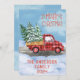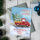 ¿Necesitan una forma linda de decir Feliz Navidad a sus amigos y familiares? Prueba esta tarjeta de Navidades de acuarela genial con un camión de chaqueta de búfalo rojo y negro que conduce por una calle llena de nieve con árboles de Navidad. Texto navideño rojo y texto personalizado de apellido. Ideal para unas vacaciones retro y vintage. Diseño unisex para hombres y mujeres. Adecuado para niños y adultos.