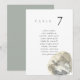 Minimalist and elegant wedding table number seating chart cards featuring a watercolor painting of a seashell. The pairing of the soft watercolor beach scene and the chic typography makes for a beautifully chic combo.