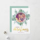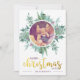 Watercolor Wreath Photo Gold Merry Christmas Holiday Card
