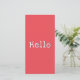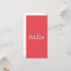 Impresiona esta tarjeta luminosa, que se aprecia con su color de la sandía en el bloque rojo. El texto predeterminado en la parte delantera es un simple "Hola", pero si lo prefiere, puede personalizar la tarjeta con sus propias palabras. El lado inverso de la tarjeta está en blanco para su propio mensaje individual. Una elección luminosa y elegante con un toque claro y minimalista.