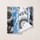 The Wave Mechanism – Custom Towel transforms abstract art into everyday functionality. Symmetrical circular motifs evoke gears in motion, while the bold blue wave band flows across the center, balancing structure with fluidity.