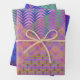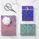 Los tonos azules, violetas, verdes y dorados se unen en formas geométricas en un paisaje pintado de ensueño para un aspecto atrevido, fresco y divertido, adecuado para todas las ocasiones. Conjunto de tres documentos de coordinación.