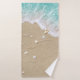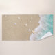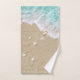Este conjunto de toallas está decorado con bonitas olas turquesa que se sumergen en una suave arena de playa cubierta de conchas de bonito.