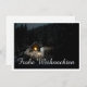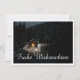 Die Karte zeigt eine stimmungsvolle, winterliche Szenerie mit einer kleinen, beleuchteten Holzhütte inmitten eines verschneiten Waldes. Die warme Lichtquelle im Inneren schafft einen schönen Kontrast zur dunklen, friedlichen Umgebung. Der elegante "Feliz Navidad"-Schriftzug en Weiß verleiht dem Motiv eine festliche Note. 🎄 ✨ Deutsch
