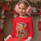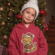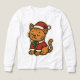 Kuscheliges orangefarbenes Kätzchen in Santa-Hut und grüner Schleife; warme Festtagsstimmung, kindgerechtes Design, ideal für weihnachtliche Oberteile und Accessoires.