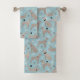 Los perros de Weimaraner se sientan, se paran y vuelan con huesos de perro dispersos y huellas en un fondo azul pálido.
