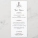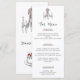 Add a touch of whimsical elegance to your wedding reception with this delightful dinner menu. The design showcases a charming hand-drawn chandelier illustration at the top and a sweet depiction of a decorated cake at the bottom, evoking a sense of celebration and indulgence. The playful script font for "Dinner Menu" adds a personal and inviting feel, making it ideal for couples seeking a menu that is both sophisticated and heartwarming. This menu card is perfect for announcing your delicious courses, from appetizers to desserts, ensuring every detail of your wedding feast is beautifully presented.