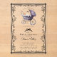Celebre la próxima llegada de su pequeño hijo con nuestra exquisita invitación a la ducha para bebés, que incluye un impresionante paseo con carrito de bebé de estilo gótico enmarcado elegantemente por un delicado borde floral. El suave fondo violeta le da un toque de encanto y sofisticación, convirtiéndolo en la elección perfecta para un evento memorable. Invite a sus seres queridos a compartir la alegría de esta ocasión especial con un diseño que equilibra maravillosamente el brillo y la elegancia.