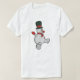 Charming snowman design featuring a vibrant green top hat, red scarf, and cheerful expression, perfect for winter apparel and holiday cheer.