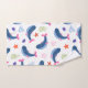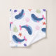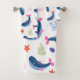 A delightful seamless pattern featuring playful blue whales with pink accents, surrounded by corals, starfish, and seaweed on a white background.