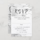 White birch bark wedding RSVP cards. Vertical design with wording that requires guests to include the number in their party attending. This requires the couple marrying to mark the total number invited on each enclosure card. White paper with very dark gray text, and easy to use templates. Realistic white birch background image, which continues onto the back where two hearts are included.