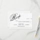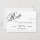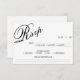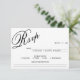 Tarjeta de respuesta RSVP de boda en blanco y negro con un gran y elegante tipo de letra de guión. Personalízalo con los detalles de tu evento.