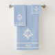 White fleur de Lis, monogram and stripes on Light Blue. Elegant modern towel set. Image only on one side.